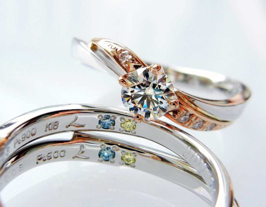 リングの内側に「イエローダイヤモンド」を