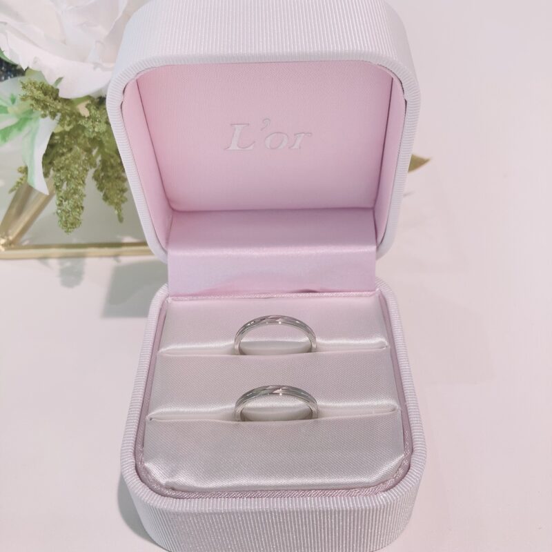 この度はおめでとうございます!お互いを思いやりながらリングを選ばれる姿がとても素敵なI様カップル♡そんなお二人が選ばれたリングは L’or (ロル)「LPP030 LPP030D」のデザイン✨つやなしのシックなリングに中心のラインが入ることによってコントラストがおしゃれ度をアップさせ、お二人共とてもお似合でいらっしゃいました☺プラチナジュエリーとしては最高純度のウルトラハードプラチナの素材を使用しているので永く愛用できる耐久性に優れています。この指輪のように末永くお幸せに♡またメンテナンス等でいつでもお待ちいたしております! スタッフ:吉岡
