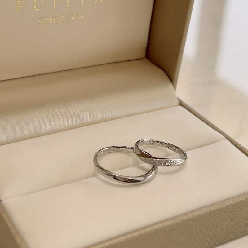 この度は誠におめでとうございます!フレッシュでお互いを思いやりながらリングを選ばれる姿がとっても素敵だったK様ご夫婦♡そんなおふたりが選ばれた運命のリングは当店オリジナルブランドBELETHE(ベルテ)の人気デザインRIZE(リゼ)です。華やかなメレダイヤが上品で少し幅広なデザインはこれから年齢を重ねるごとに指に馴染みます。華やかな印象のお二人にとってもお似合いでいらっしゃいました✨またメンテナンス等でお会いできるのを楽しみにしております。末永くお幸せに♡ スタッフ:吉岡