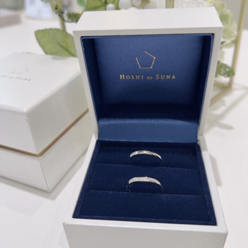 おふたりには HOSHI no SUNA のマリッジリング「イリス」をお選びいただきました。