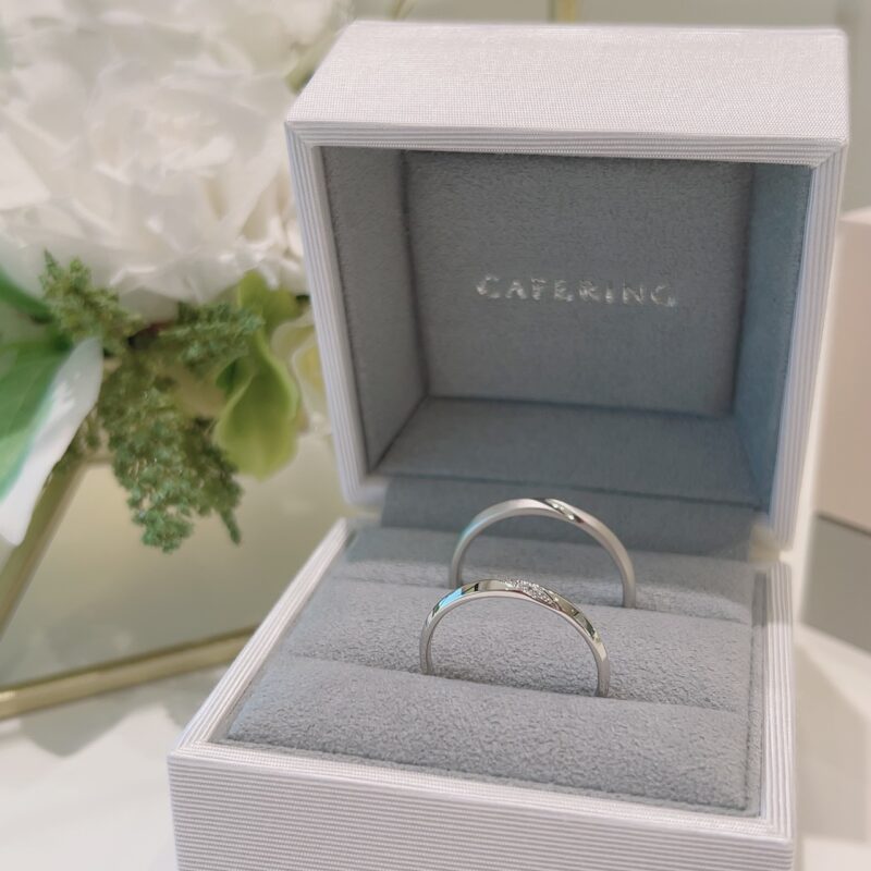 この度はおめでとうございます!明るくあったかい雰囲気のおふたり♡たくさんの指輪の中からおふたりが選ばれた運命のリングは、CAFERING 「Lumiere リュミエール」です。ストレートでシンプルな飽きのこないデザインにCAFERINGならではの指にしっくり馴染むボリューム感が、これからの新生活を一層楽しくさせてくれます✨M様、D様 何度も足を運んでいただきありがとうございました。おふたりで悩んで、たくさん試着されたそんな思い出と共にこれからの未来を歩まれてくださいね!どうぞ末永くお幸せに…♡ スタッフ:吉岡