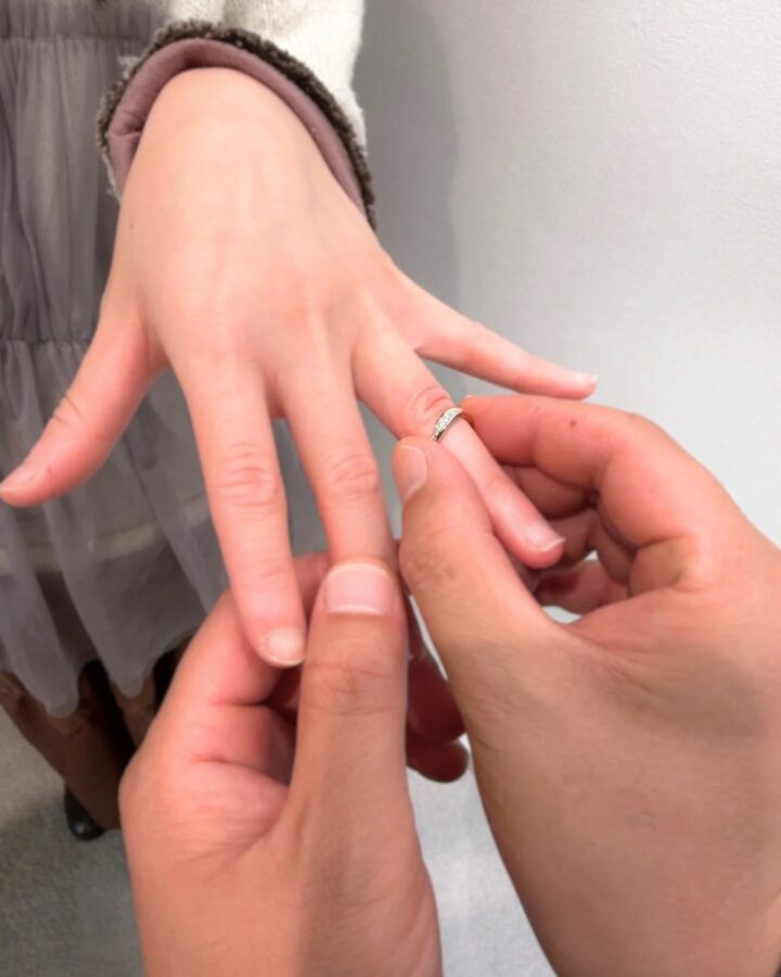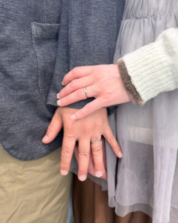 2色のコンビリングでペア感は残しつつ、おふたりらしいこだわりをぎゅっと詰めた特別な結婚指輪が完成いたしました。