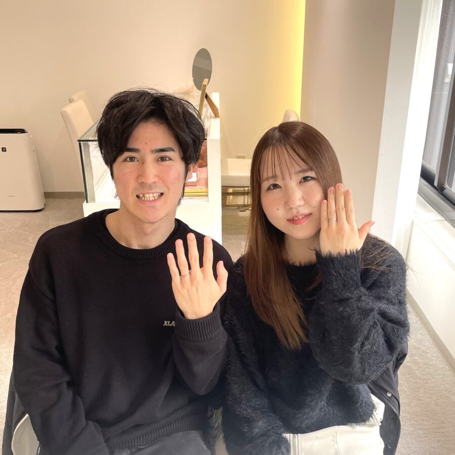 とても穏やかで優しい雰囲気のS様・N様 ♡ 最初のご来店はS様おひとりで。" プロポーズをするなら彼女にピッタリのものを選びたい! " そうお話してくださる姿から、N様への深い思いが伝わってきました。じっくりご相談を重ね、プロポーズの贈り物としてダイヤのネックレスとピアスをお選びいただきました。身に着けるシーンや好みを思い浮かべながら選ばれたN様への思いが詰まった特別なものです✨その後、おふたり一緒に結婚指輪を選びにご来店いただき、たくさんの候補の中からひとつひとつ手に取りながらお互いの意見を大切に、真剣に悩まれるお姿がとても印象的でした。そんなお二人が選んだ運命のリングは「L'or LPP020/LPP020D」です。シンプルで洗練されたデザインは、毎日身に着けるからこそ長く使っても飽きがこず、おふたりの暮らしに自然と寄り添うリングとなりました💍この度はプロポーズから結婚指輪までお任せいただき誠にありがとうございました。メンテナンス等いつでもお気軽にお立ち寄りください。末永くお幸せに…♡ スタッフ:吉岡
