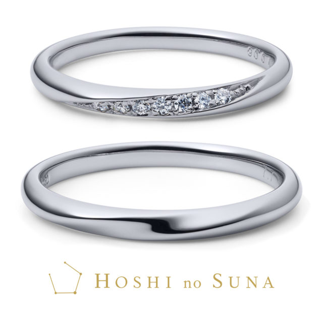 この度は本当におめでとうございます!お選びいただいたアリエルはストレートのデザインの中にウェーブのラインが入り、流れる曲線が美しい指輪です。この曲線の様に優しい雰囲気のお二人にぴったりでした。「ずっとそばにいて」という意味の込められたこの指輪がお二人の絆をより深めていってくれます。お二人の大切な指輪をFUJITAで見つけていただき嬉しく思います。これからもしっかりとアフターケアさせていただきますので、どうぞご遠慮なくFUJITAにお立ち寄りくださいませ。 スタッフ 藤田和佳奈