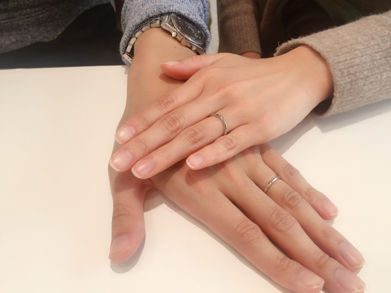 以前婚約指輪を当店でお求めいただいておりましたW様カップル。暖かな雰囲気のおふたりでいつも私のほうが癒されています。 今度は結婚指輪をご成約いただきました♡ お選び頂きましたのは婚約指輪とセットリングとなる「SIRIUS シリウス」。シンプルな中にも、流れるような曲線やなめらかな着け心地、ダイヤを星型に留めていたりとこだわりのつまった美しいリングです。 幸せな日々の中で、婚約指輪との重ね着けもぜひお楽しみくださいませ^^* この度は当店をご利用頂きまして誠にありがとうございました。またお会いできる日を楽しみにいたしております。 スタッフ:藤田祐実