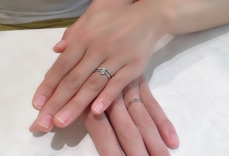 美男美女なさわやかカップル様です♡ 最初はプロポーズ用のリングをと彼氏さまお一人でご来店いただきました。お選び頂きましたのはハワイアンジュエリーの婚約指輪です。"絶えず幸せが訪れますように"という願いを込めてスクロール(波)模様の手彫りが施された素敵な指輪です。無事プロポーズを終えて彼女様とご来店いただき、ぴったりのサイズでお作りさせて頂きました。手彫りの繊細でおしゃれなデザインが彼女さまにとってもお似合いです。 結婚指輪は当店オリジナルのリング、ショコラをお選び頂きました。アシンメトリーに2色使いをしたこだわりのデザインで人と被りにくいタイプです。こちらもおふたりの雰囲気にとてもお似合いでいらっしゃいました。 この度は大切な指輪選びに当店をお選び頂きまして誠にありがとうございました。しっかりとアフターメンテナンスさせて頂きますので今後ともどうぞ宜しくお願い致します。 そしてご入籍までもうしばらく♡ 是非婚約指輪をたくさん着けて、ダイヤモンドの輝きを楽しみながら幸せな婚約期間を過ごされてくださいませ♡ どうぞお幸せに…♡ スタッフ:藤田祐実
