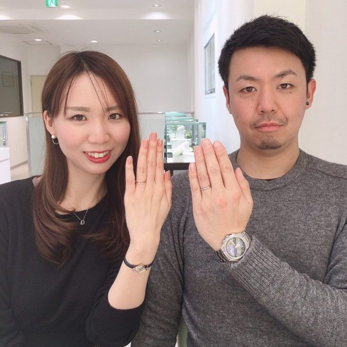 この度は誠におめでとうございます。以前、婚約指輪をお求め頂きましたF様。かっこよくて優しい新郎様、美人で綺麗な新婦様にお選びいただきましたのはHOSHI no SUNA "SPARK スパーク"です。煌めきを表現した多面カットが入ったデザインで、光の当たり方で様々な表情を見せてくれるオシャレで上品な細身のリングです。新郎様はプラチナ、新婦様はK18ピンクゴールドでお作りさせていただきました。シンプルながらも、デザインがある指輪がお洒落なF様にとてもお似合でした♡いつまでも仲の良い素敵なお二人で♡クリーニング等でお会いできるのを楽しみにしております。 スタッフ:藤田文香