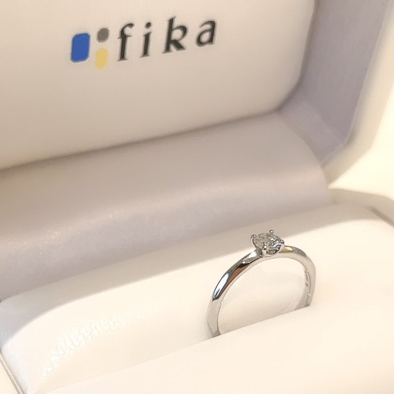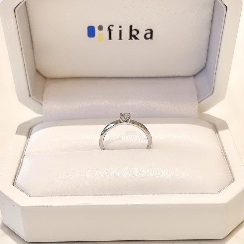 婚約指輪をご納品させて頂きました、Tさまカップルです♡ さわやかで頼りがいのある新郎さまとおしゃれで笑顔が可愛い新婦さまのとてもお似合いなおふたりです(^^*)!この度は誠におめでとうございます! お選びいただきましたのは fika フィーカの「光」。シンプルなストレートに柔らかなカッティングが入りスタイリッシュさと温かみを兼ね揃えたデザインです。センターにお留めしたダイヤモンドはカラーが最上級のDカラー、クラリティもとても良いものをお選びいただきましたので輝きも本当に美しいリングが完成いたしました °˖✧ これからTさま家族の家宝となり輝き続けることと思います。 お受け取りの際には結婚指輪もお選び頂きましてありがとうございます。こちらもできあがりまでどうぞお楽しみにお待ちくださいませ。この度は本当にありがとうございました! スタッフ:藤田祐実