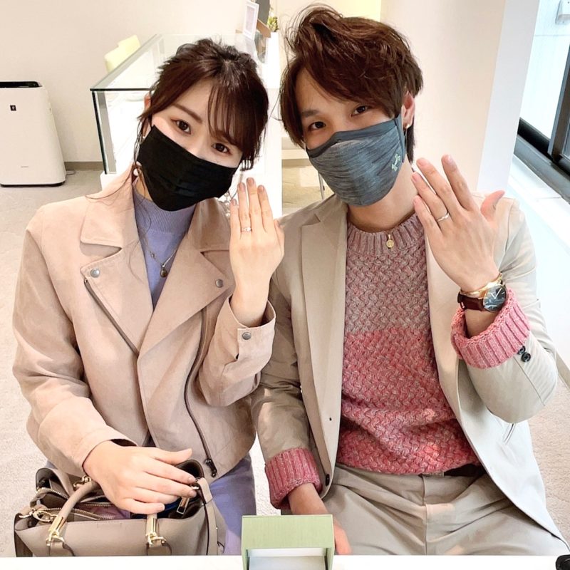 この度はお二人の大切な指輪を当店でお求め頂きまして誠にありがとうございました! とってもおしゃれで美男美女なお二人です♡ 婚約指輪、結婚指輪とも「LAPAGE」をお選びいただきました。 "天使のハープ"と"ニケ"の重ね着けをつけて頂いた時の、「可愛い!!」とおっしゃる姿が本当に可愛くて、それを幸せそうに見つめる新郎様の姿にとても暖かな気持ちになりました (*´ч`*)♡ 婚約指輪はピンクゴールド、結婚指輪はイエローゴールドとプラチナというおしゃれな配色に。新郎様の結婚指輪はプラチナに、一部ホワイトゴールドのマット加工を施し立体感と高級感の溢れる仕上がりとなりまして、おふたりにとてもお似合いな個性とセンスが光るリングが出来上がりました! この度は本当におめでとうございます。これからもしっかりとアフターケアさせて頂きますのでどうぞ宜しくお願い致します。末永くお幸せに・・・♡ スタッフ:藤田祐実