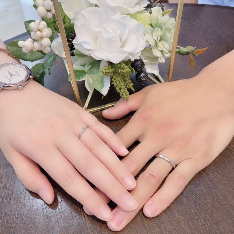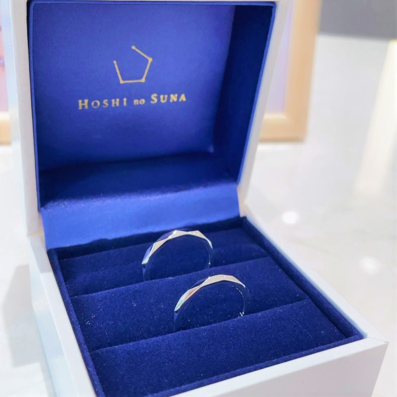 この度は誠におめでとうございます!おふたりとも暖かな雰囲気がとっても素敵な仲睦まじいMさまカップルです♡ お選びいただきましたのは「HOSHI no SUNA」の"SPARK"。多面カットのすっきりとしたデザインで手を動かすたびにプラチナがキラキラと煌めきます。 メンズのリングは幅広タイプをお選びいただき、がっちりした新郎様のお手元にとてもお似合でいらっしゃいました。また、レディースは3石ダイヤモンドが並んだデザインでプラチナの輝きと相まって色白の新婦様にぴったり似合っていらっしゃいました♡ この度はお二人の大切な結婚指輪をブライダルジュエリーフジタでお選びいただきまして本当にありがとうございます。 サイズ調整や磨きなおしなどしっかりとサポートさせて頂きます。どうぞ今後ともよろしくお願いいたします。 スタッフ:藤田祐実