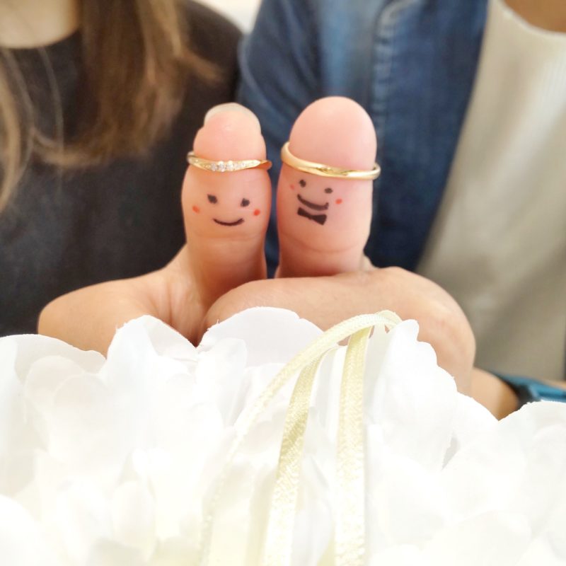 この度は当店でお二人の大切な指輪をお選び頂き誠にありがとうございました。明るくしっかりされている奥様、包み込むような優しさで奥様を見つめる旦那様♡その様子がとても素敵で、これからおふたりが作っていかれる素敵なご家庭が目に浮かびました。小柄で可愛い雰囲気の奥様に、ピンクゴールド×ピンクダイヤモンドグラデーションがとてもお似合でいらっしゃいました。ご主人様もピンクゴールド×つや消しがとてもお洒落な仕上がりでした。これからもどうぞお気軽にFUJITAへお越しくださいませ。指輪のクリーニング等、末永くサポートさせていただきます。この度は誠におめでとうございます‼ スタッフ:藤田和佳奈