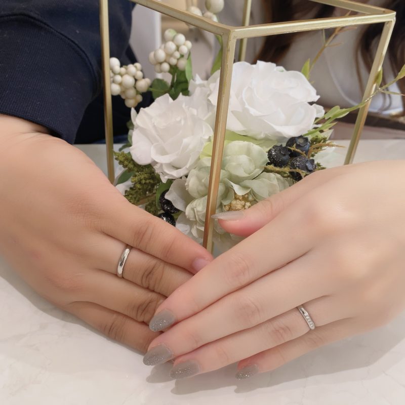 この度は誠におめでとうございます!とても明るく周りを笑顔にするパワーをおもちの仲良しI様ご家族♡奥様のご希望だった ”ストレートでダイヤが5つ並んだデザイン ” をセミオーダーが可能な『Ptau ピトー』でオーダー。お二人がお選びされたデザインは「ラウンド」丸みを帯びた優しいフォルムで、メンズは装飾なしのシンプルでいつまでも飽きのこないデザイン。レディースは5つに並んだダイヤが輝き、とても華やかなデザインでお二人にとてもお似合でいらっしゃいました。Ptauのリングは素材が純金と純プラチナ1:1の割合で融合した、貴金属100%のハイブリットリング。その二つを掛け合わせることで、それぞれが持っているよりもはるかに高い硬度が実現します。I様ご家族もこのリングのように硬い絆を結んでいつまでも幸せ溢れる家庭を築いてください。どうぞ、お幸せに! スタッフ:畑山
