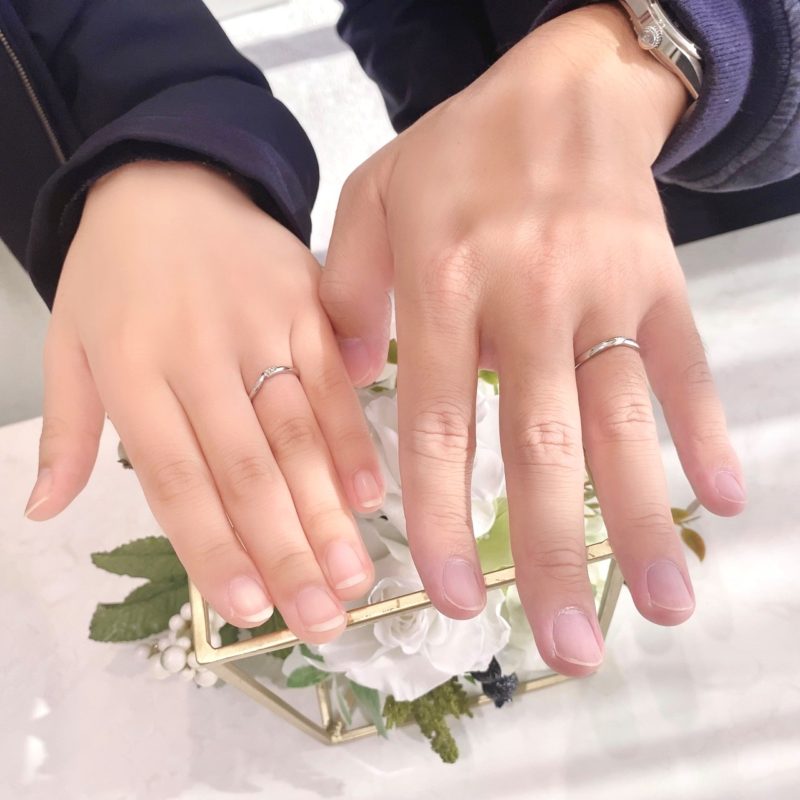 M様この度は誠におめでとうございます! 優しく落ち着いた雰囲気を纏う素敵なおふたりには〖BELETHE〗の『RUHUNA』をお選びいただきました。 『RUHUNA』は繊細で華奢なラインに上品なメレダイヤをプラチナのビーズでお留めした、 シンプルかつ飽きの来ないデザインになっております。お選びいただいた時から一際おふたりのお手元にお似合いでした。 また、お選びになる際のお互いを気遣うようなおふたりの姿にこちらまで幸せな気持ちになりました♡ おふたりの大切な指輪をBRIDAL JEWELRY FUJITAでお選びいただき、本当にありがとうございます。 またメンテナンス等でお会いできる日を楽しみにお待ちしております。スタッフ:川野