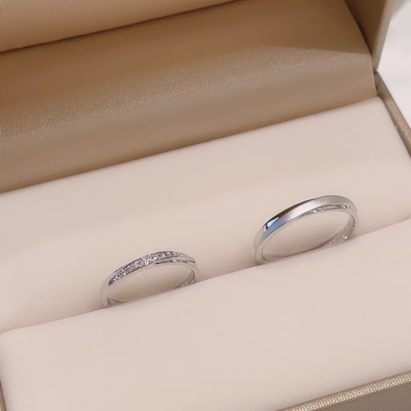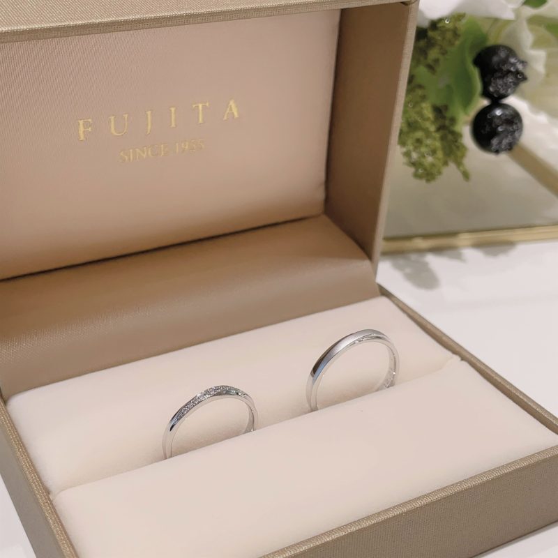 クリスマスにご入籍をされたMさまご夫妻です♡ この度はご結婚誠におめでとうございます! おしゃれなお二人にお選びいただきましたのは当店オリジナルブランド「ベルテ」の " アンブレ "。王道のストレートのリングに流れるように留められたダイヤモンドが輝く、贅沢で美しいデザインです。メンズは少し幅広で中央部分の立体的な部分をマット加工で仕上げさせていただき、一味違ったかっこよさがポイントです。 おふたりのお指にとてもお似合いでいらっしゃいました °˖✧ この度はお二人の大切な指輪を当店でお求めいただきまして誠にありがとうございました。またお会いできる日を楽しみにいたしております。どうぞ末永くお幸せに♡ スタッフ:藤田祐実