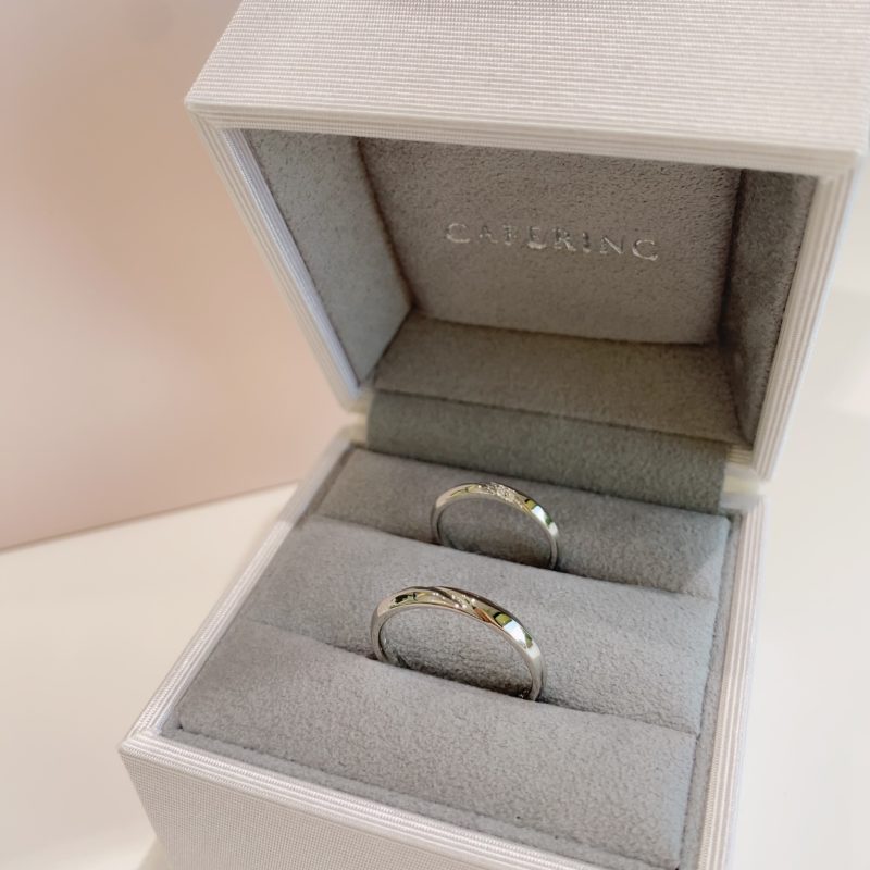 この度は誠におめでとうございます。ニコニコ笑顔が素敵なF様にお選びいただきましたのは、CAFERING『Lumiere リュミエール』です。リングを重ねることで、二つのリングから一筋の光が現れるようデザインされており、「これから共に歩む人生に、たくさんの幸せの光が降り注ぎますように。」という意味が込められています✨お二人の素敵な笑顔のように、これからも幸せが溢れることを祈っています。この度は素敵なご縁をありがとうございます。またクリーニング等でお二人にお会いできる日を楽しみにしております。どうぞ末永くお幸せに♡ スタッフ:藤田文香