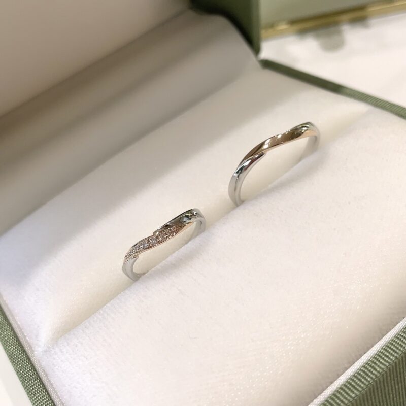 この度は誠におめでとうございます。 掛け合いが楽しく真剣に指輪を選ばれていた、S様ご夫婦の運命のリングになりましたのは【LAPAGE】の『ダリア』です。 ピンクゴールドとプラチナのコンビリングで肌なじみが良くお洒落で目を引くデザインに仕上がり、 プラスでLADY'Sはメレダイヤモンドを連ねた華やかなアレンジでこだわりが詰まった素敵な指輪が完成いたしました°˖✧ おふたりの大切な指輪を当店でお選びいただき、大変嬉しく思います。誠に有難うございます。 また、メンテナンスなどでお会いできる日を楽しみにお待ちしております。 末永くお幸せに°˖✧ スタッフ:川野
