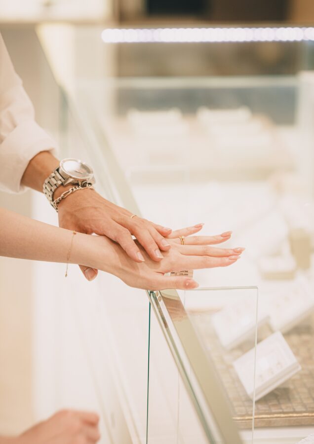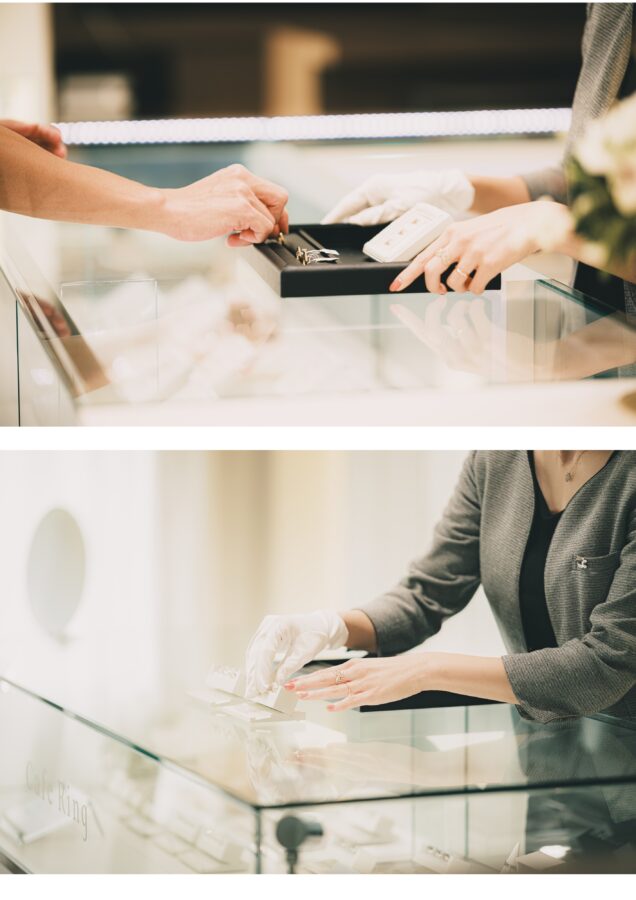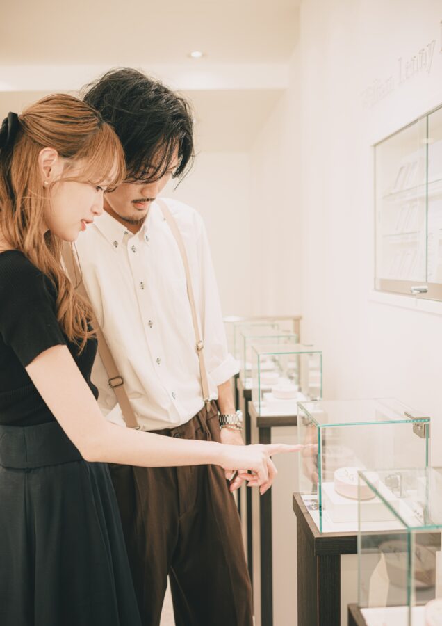 店内では、婚約指輪・結婚指輪を実際に見ながら、