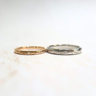 Bridal Jewelry Fujitaでは、取り扱っている多彩なリングをベースに、おふたりのこだわりをプラスしたセミオーダーのリングを作成することが出来ます。リングに留められているダイヤモンドのカラーや数を変更したり 、素材の変更や表面仕上げの質感を変更したりして、デザインに徹底的にこだわった二人だけのオリジナルリングをお作りできます。